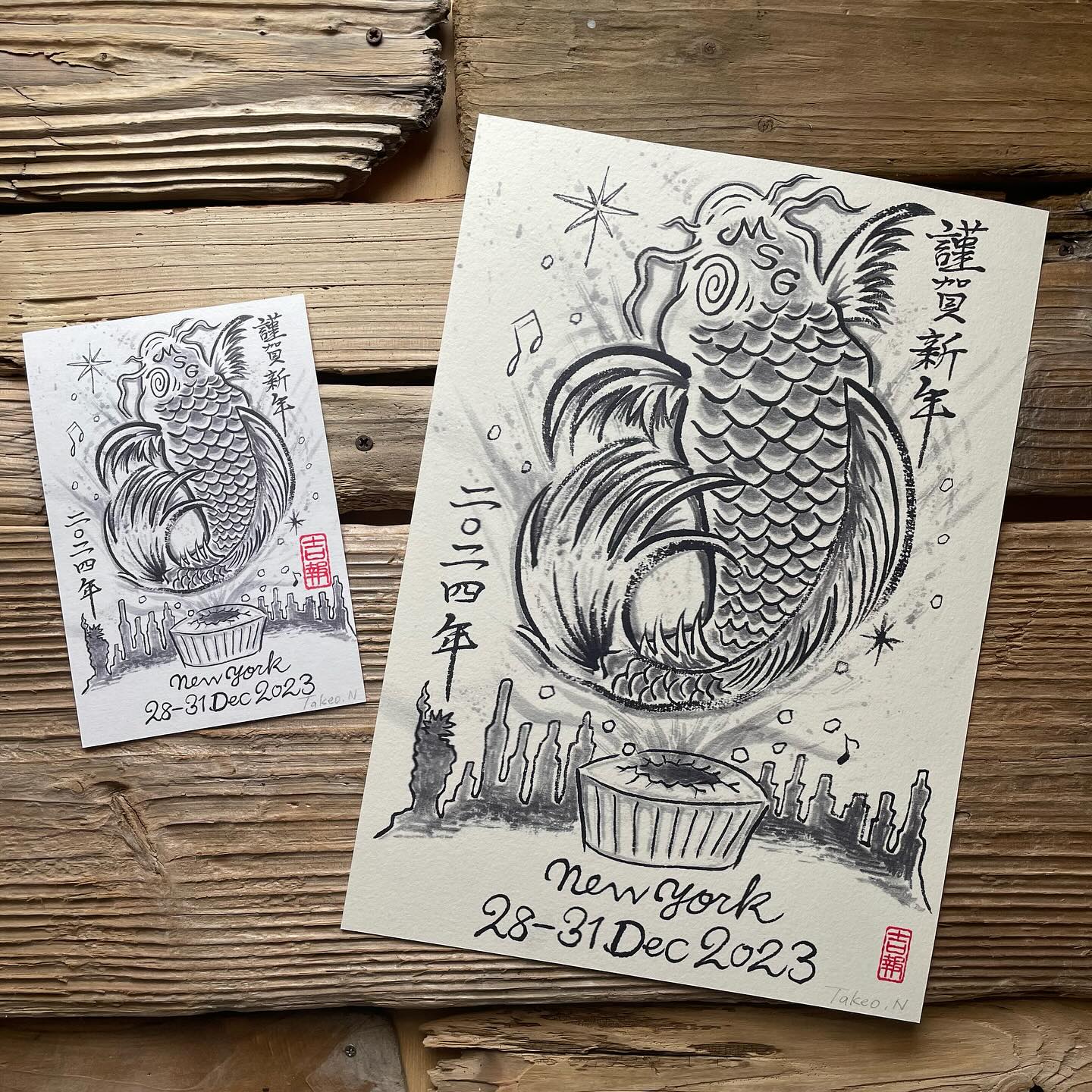 PHISH NYE 2023 Ink painting art PRINT Card and Mini Poster